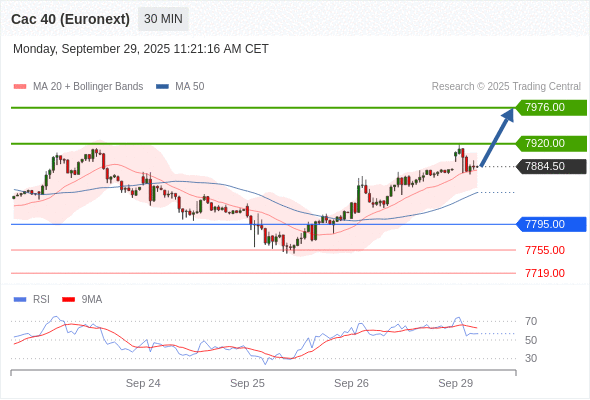 在 7795.00 之上,看涨,目标价位为 7920.00 ,然后为 7976.00 。