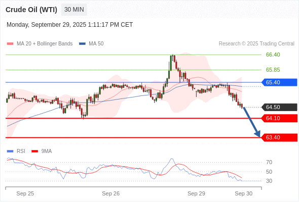 在 65.40 之下,看跌,目标价位为 64.10 ,然后为 63.40 。