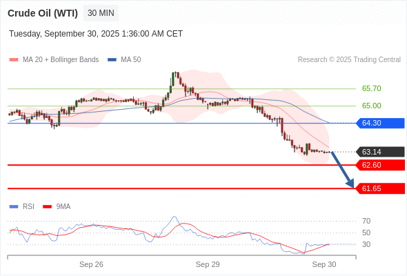 在 64.30 之下,看跌,目标价位为 62.60 ,然后为 61.65 。