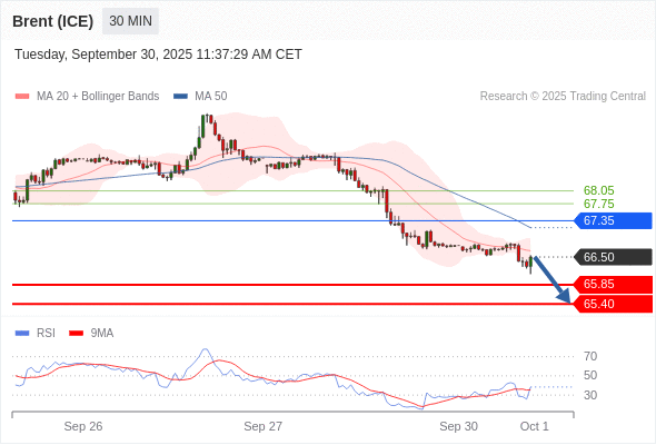 在 67.35 之下,看跌,目标价位为 65.85 ,然后为 65.40 。