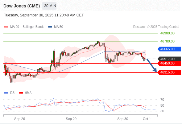 在 46665.00 之下,看跌,目标价位为 46450.00 ,然后为 46315.00 。