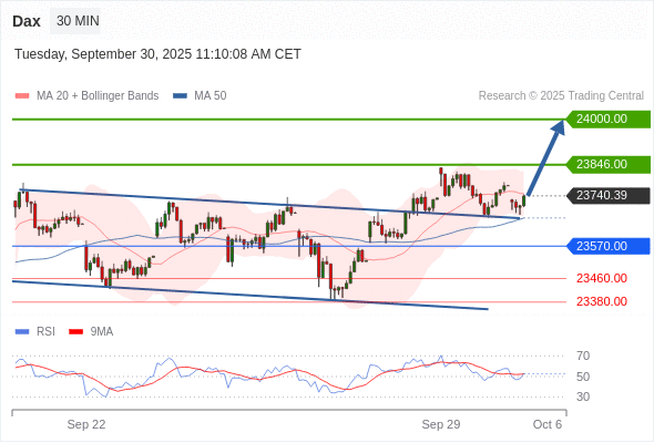 德国DAX指数 当日内: 在23570.00之上,看涨。