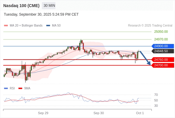 在 24900.00 之下,看跌,目标价位为 24760.00 ,然后为 24700.00 。