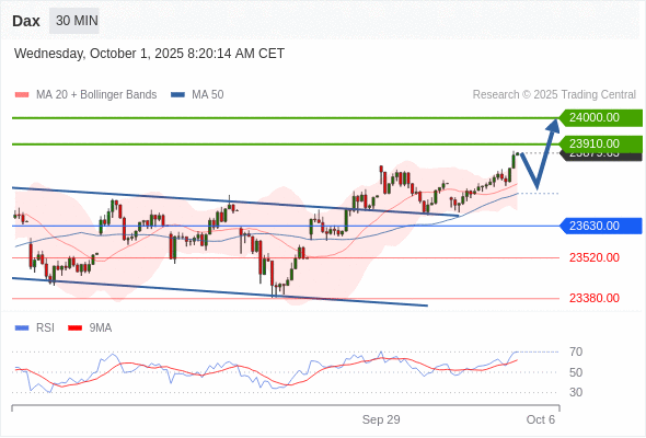 在 23630.00 之上,看涨,目标价位为 23910.00 ,然后为 24000.00 。
