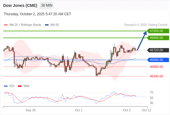 在 46580.00 之上,看涨,目标价位为 46900.00 ,然后为 47000.00 。