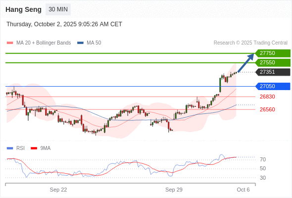 在 27050 之上,看涨,目标价位为 27550 ,然后为 27750 。