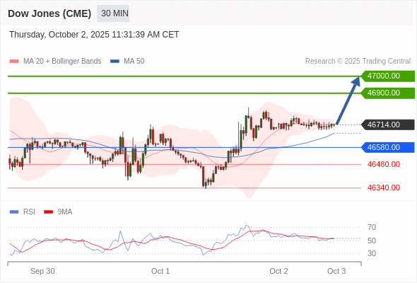 在 46580.00 之上,看涨,目标价位为 46900.00 ,然后为 47000.00 。