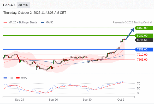 在 7959.00 之上,看涨,目标价位为 8089.00 ,然后为 8160.00 。