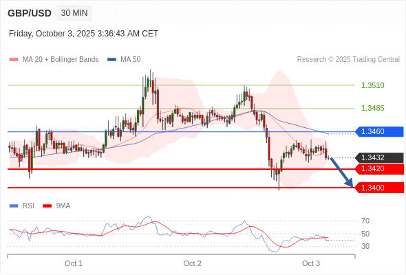 交易策略: 在 1.3460 之下,看跌,目标价位为 1.3420 ,然后为 1.3400 。