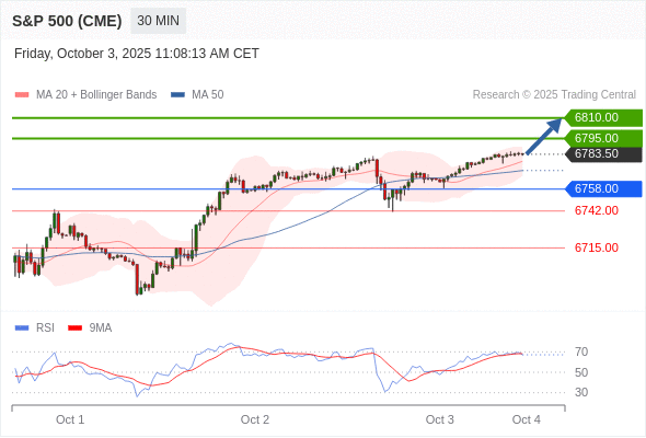在 6758.00 之上,看涨,目标价位为 6795.00 ,然后为 6810.00 。
