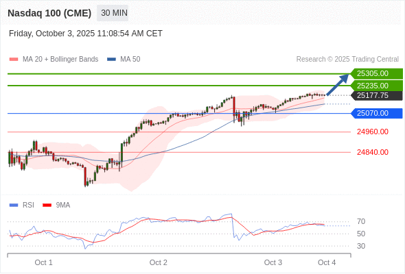在 25070.00 之上,看涨,目标价位为 25235.00 ,然后为 25305.00 。