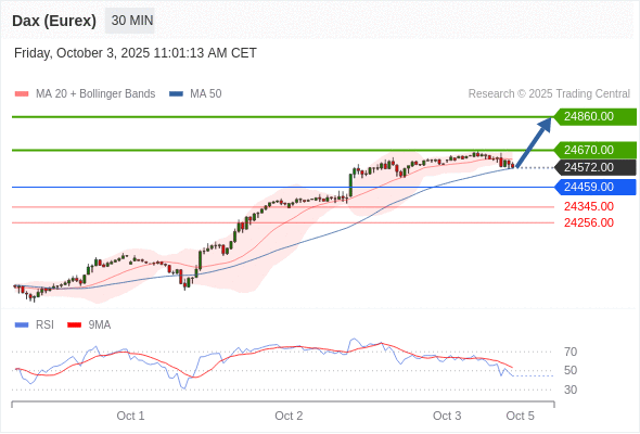 在 24459.00 之上,看涨,目标价位为 24670.00 ,然后为 24860.00 。