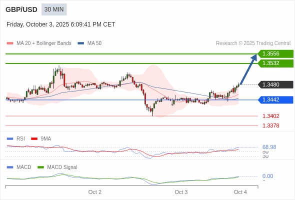 交易策略: 看涨,当 1.3442 为支撑位。