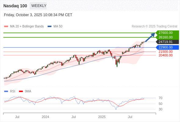 纳斯达克100 中期: 进一步上涨。