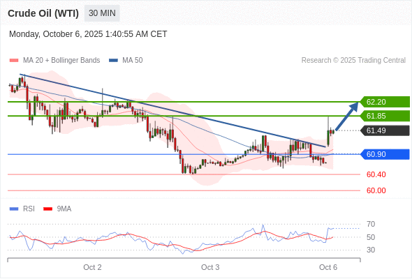在 60.90 之上,看涨,目标价位为 61.85 ,然后为 62.20 。