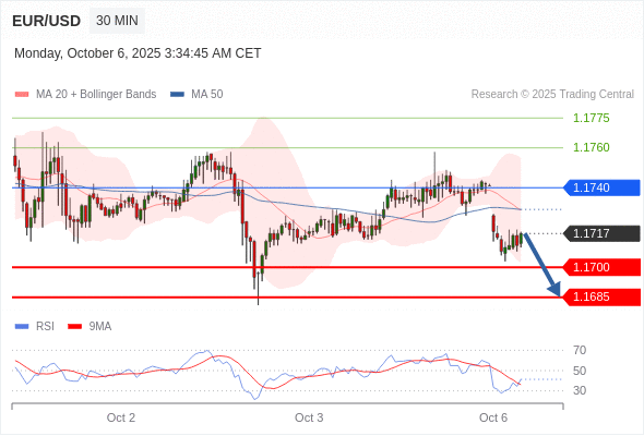 交易策略: 在 1.1740 之下,看跌,目标价位为 1.1700 ,然后为 1.1685 。