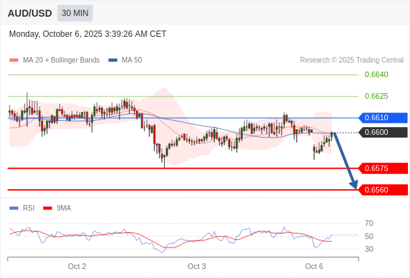 在 0.6610 之下,看跌,目标价位为 0.6575 ,然后为 0.6560 。