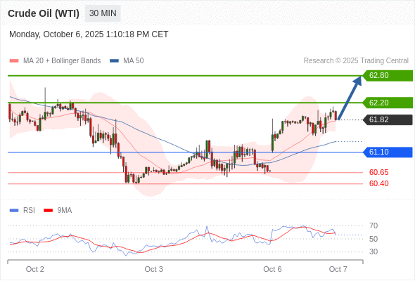 在 61.10 之上,看涨,目标价位为 62.20 ,然后为 62.80 。