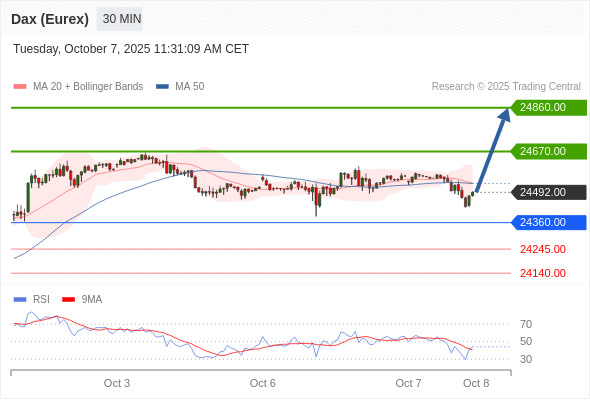 在 24360.00 之上,看涨,目标价位为 24670.00 ,然后为 24860.00 。