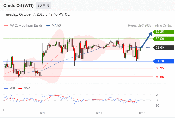在 61.20 之上,看涨,目标价位为 62.00 ,然后为 62.25 。