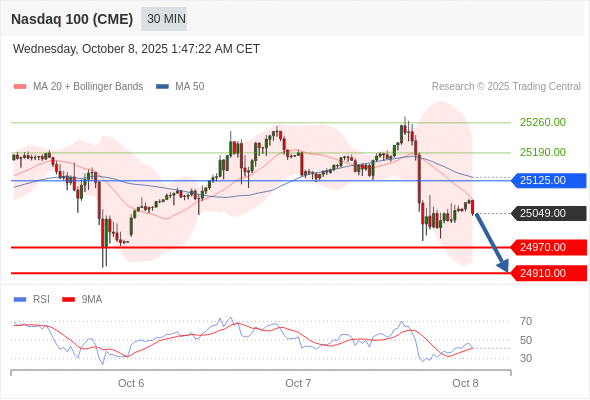 在 25125.00 之下,看跌,目标价位为 24970.00 ,然后为 24910.00 。