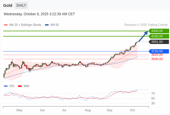 在 3720.00 之上,看涨,目标价位为 4150.00 ,然后为 4300.00 。