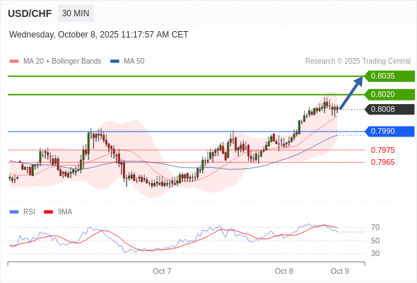 在 0.7980 之上,看涨,目标价位为 0.8030 ,然后为 0.8045 。