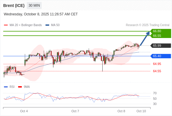 在 65.40 之上,看涨,目标价位为 66.55 ,然后为 66.80 。