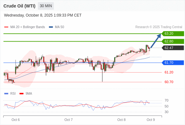 在 61.70 之上,看涨,目标价位为 62.80 ,然后为 63.20 。