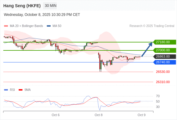香港恒生指数期货 当日内: 超短线(当日内)支撑位在26740.00附近。