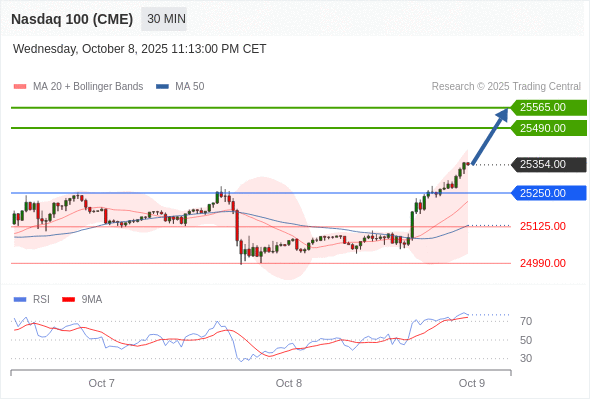 在 25250.00 之上,看涨,目标价位为 25490.00 ,然后为 25565.00 。
