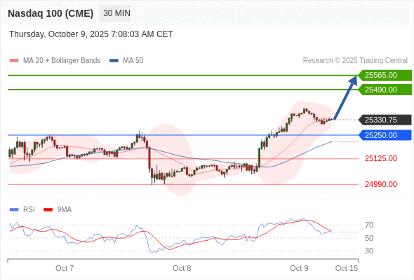 在 25250.00 之上,看涨,目标价位为 25490.00 ,然后为 25565.00 。