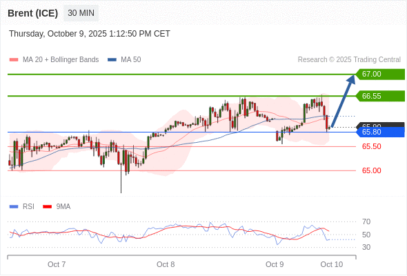 在 65.80 之上,看涨,目标价位为 66.55 ,然后为 67.00 。