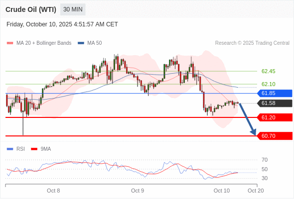 在 61.85 之下,看跌,目标价位为 61.20 ,然后为 60.70 。