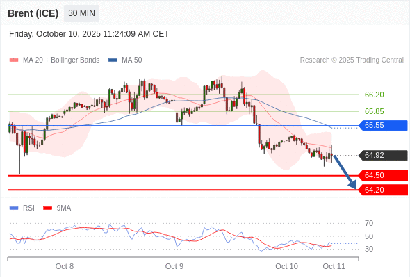 在 65.55 之下,看跌,目标价位为 64.50 ,然后为 64.20 。