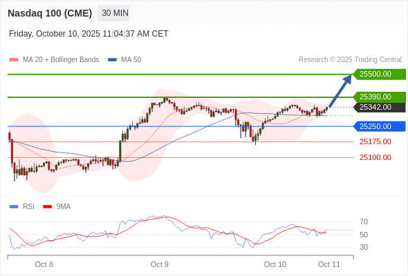 在 25250.00 之上,看涨,目标价位为 25390.00 ,然后为 25500.00 。