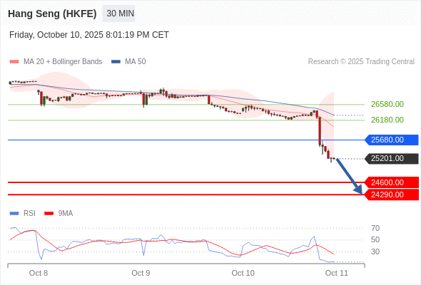 在 25680.00 之下,看跌,目标价位为 24600.00 ,然后为 24290.00 。
