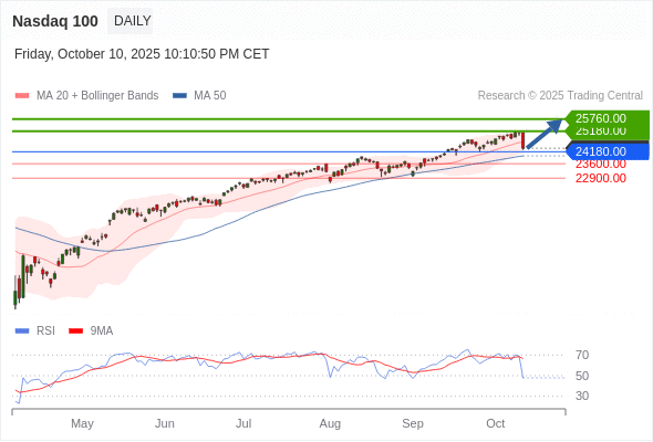 在 24180.00 之上,看涨,目标价位为 25180.00 ,然后为 25760.00 。