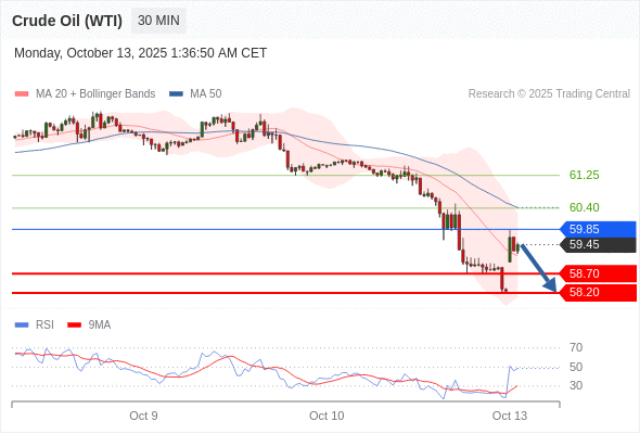 在 59.85 之下,看跌,目标价位为 58.70 ,然后为 58.20 。