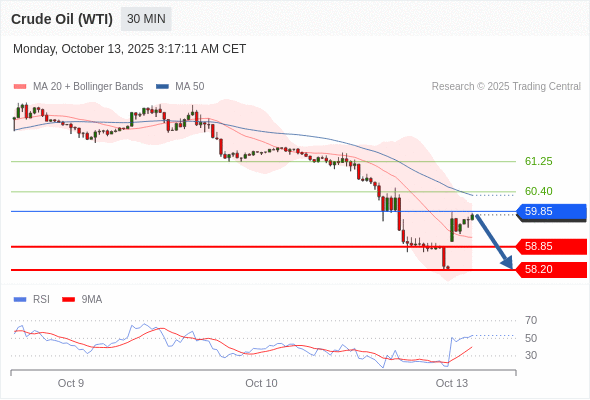 在 59.85 之下,看跌,目标价位为 58.85 ,然后为 58.20 。