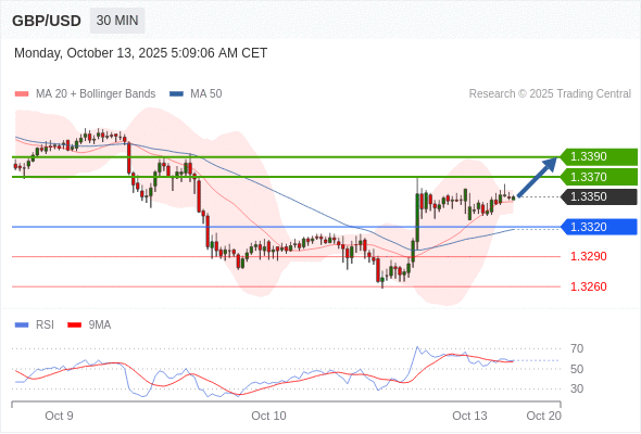 在 1.3320 之上,看涨,目标价位为 1.3370 ,然后为 1.3390 。