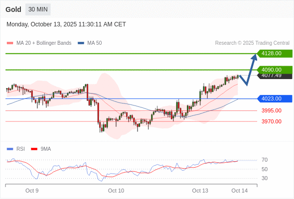 在 4023.00 之上,看涨,目标价位为 4090.00 ,然后为 4128.00 。