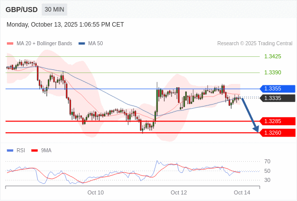 在 1.3355 之下,看跌,目标价位为 1.3285 ,然后为 1.3260 。