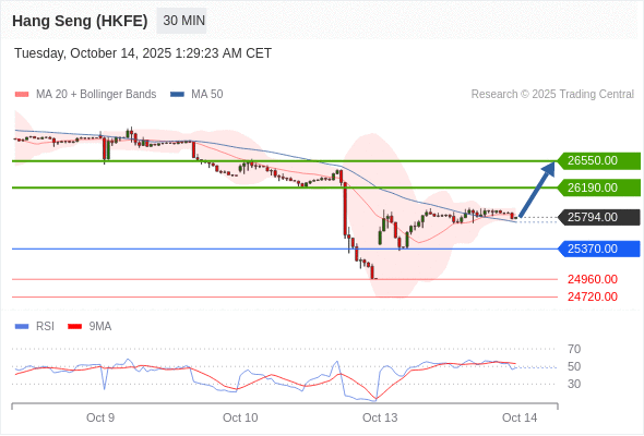 在 25370.00 之上,看涨,目标价位为 26190.00 ,然后为 26550.00 。