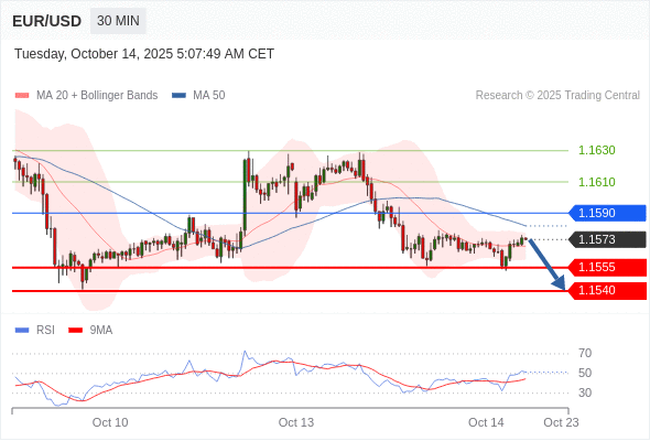 在 1.1590 之下,看跌,目标价位为 1.1555 ,然后为 1.1540 。