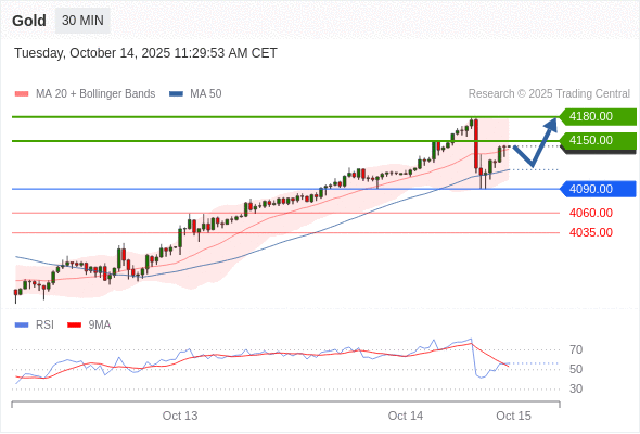 在 4090.00 之上,看涨,目标价位为 4150.00 ,然后为 4180.00 。