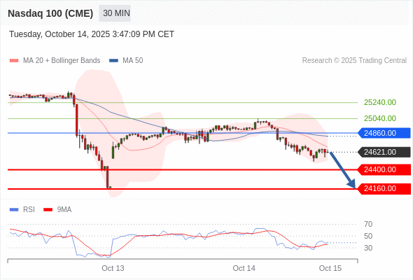 在 24860.00 之下,看跌,目标价位为 24400.00 ,然后为 24160.00 。