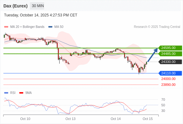 在 24110.00 之上,看涨,目标价位为 24485.00 ,然后为 24595.00 。