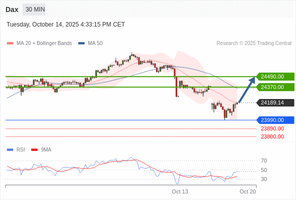 在 23990.00 之上,看涨,目标价位为 24370.00 ,然后为 24490.00 。