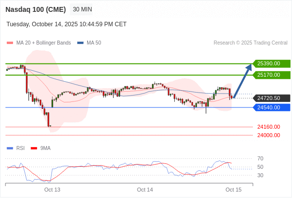 在 24540.00 之上,看涨,目标价位为 25170.00 ,然后为 25390.00 。